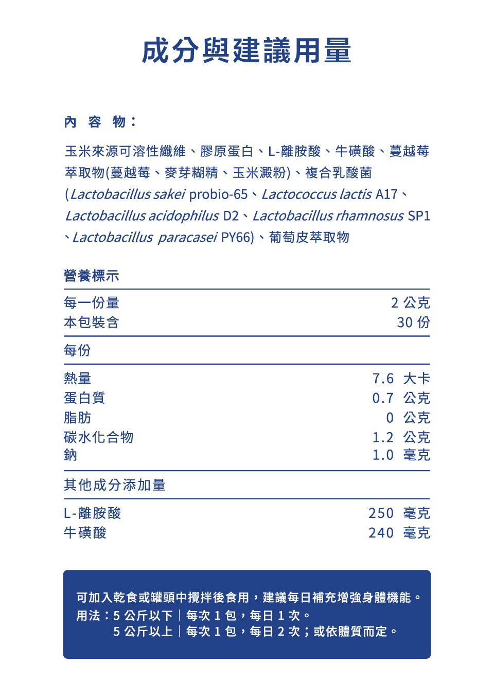 ★ 含牛磺酸、離胺酸、水解膠原蛋白胜肽等營養。