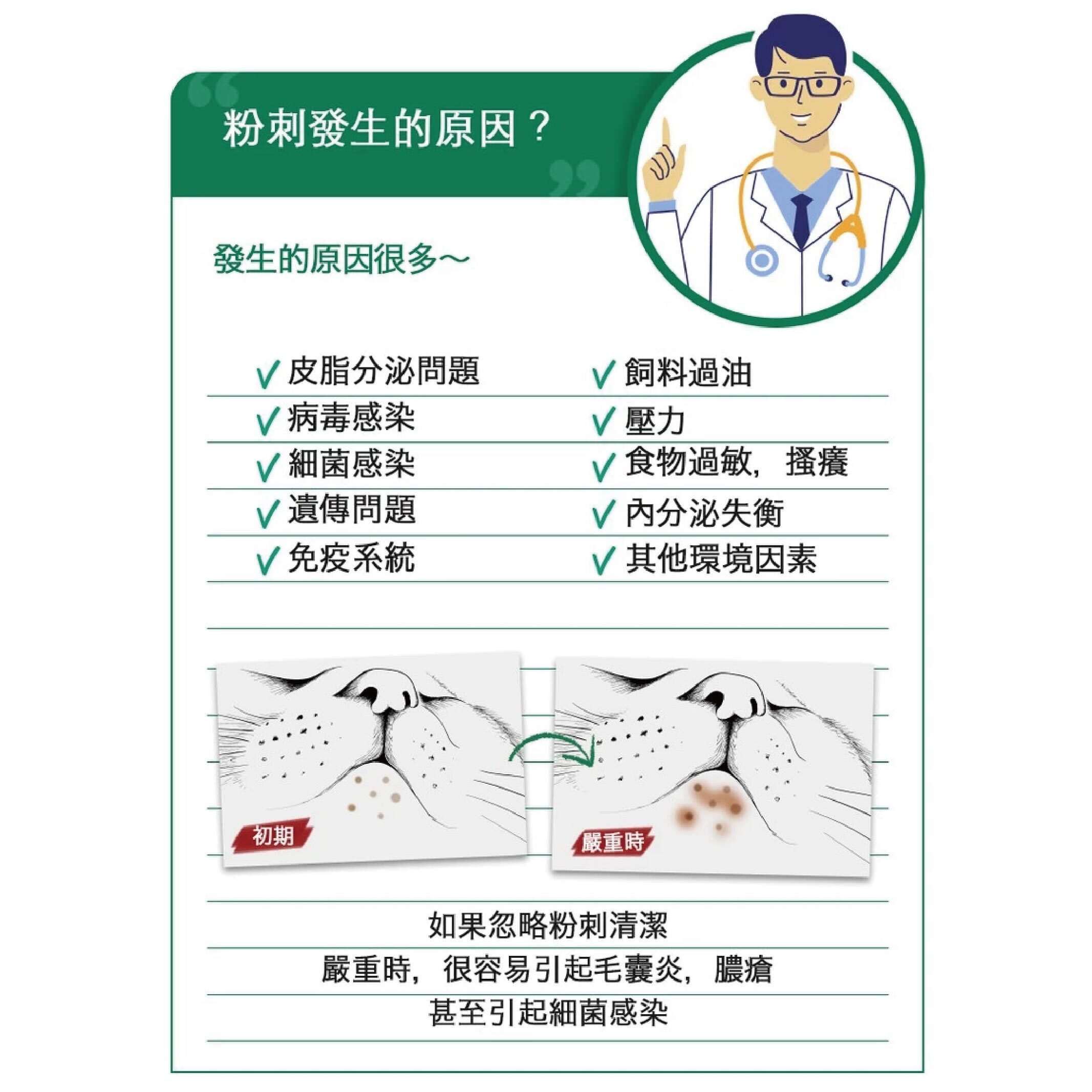 來自韓國,專家嚴選植萃成分,清潔貓咪粉刺,同時調理皮脂問題。內含高單位積雪